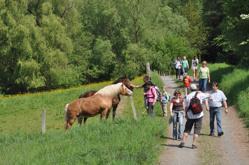 In Söven angekommen, wurde die Wandergruppe von einem großen Schild an der Straße „Bio Land Eis“ angelockt. Dies war dann nun der richtige Zeitpunkt für eine weitere Belohnung. Nach dieser letzten Rast und viele Eis Leckereien folgte der „Abstieg“ über Feld- und Wiesenwege westlich von Wippenhohn und über den Steimelshof zurück über die Warth und vorbei an der Pfarrkirche Liebfrauen nach Weldergoven.