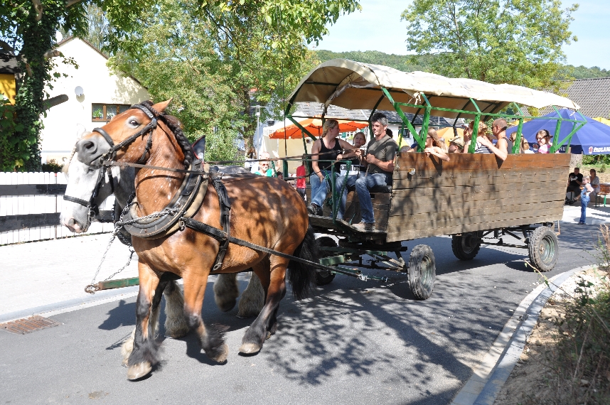Der Sonntag mit Frühschoppen startete zunächst eher ruhig und verhalten. Die meisten mußten sich wohl noch von dem Abend zuvor erholen .-) Vielfältige Kinderaktionen und das schöne Wetter führten aber dazu, dass nach und nach immer mehr Besucher zur Scheune strömten. Ein besonderes Highlight war sicher die Planwagenfahrt durch Weldergoven und das Neubaugebiet „Im Siegbogen“. 3 Stunden lang konnten die Kinder, aber auch so mancher Erwachsene, zu einer Rundfahrt starten.