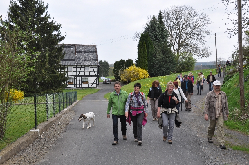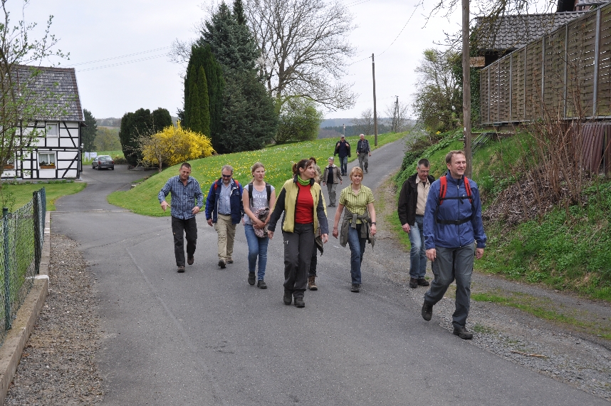 Ursprünglich war die Vorwanderung fast 20km lang, was dazu führte, das uns (Marion, Utta, Heinz und mir) doch am Ende – nach langer unsportlicher Winterpause – die Socken qualmten und Beine schwer wurden. So haben wir also schweren Herzens die landschaftlich reizvolle Schleife an der Wahnbachtalsperre  an dem Ringelstein westlich von Wolperath aus der Tour gestrichen.