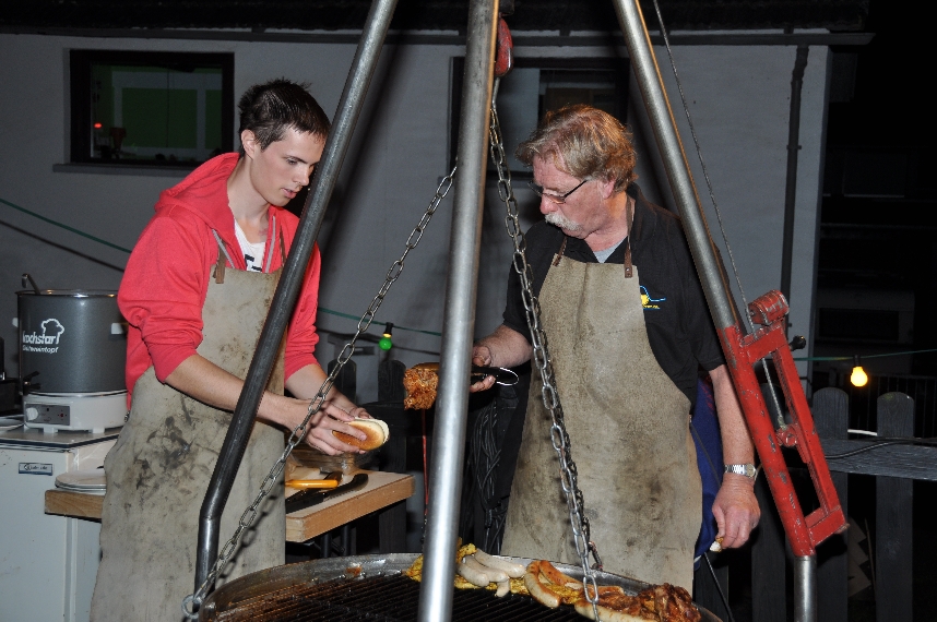 6 Bons und die Partynacht konnte steigen – denn so viel kostete ein „Sex On The Beach“ an der Cocktailbar beim Weldergovener Scheunenfest. Als „spritziger Typ am Abend“ hätte auch DJ Markus durchgehen können, der wieder mal genau wusste, was die Weldergovener und ihre Gäste um die Ohren haben wollten, aber der Name war schon für das Inn-Getränk des Jahres „Hugo“ reserviert. Bis nach 2 Uhr in der Nacht mixten Vorstand und Beisitzer der IGW, und die, die es noch werden wollen, was Schirmchen und Co. hergaben. Die Nebelmaschine wurde kurzerhand durch umtriebige Aktivitäten an der Grillstation ersetzt. Fantastische Stimmung herrschte am Abend, die mit dem Fassanstich durch Bürgermeister Klaus Pipke seinen Anfang nahm. Am Vorabend der Bundestagswahl lautete seine Devise: „Erst wählen, dann feiern“ und der mitgebrachte halbe Rat machte sich schon mal ein Bild von den „Örtlichkeiten“, schließlich könne man das Wahllokal auch direkt in die Scheune verlegen.