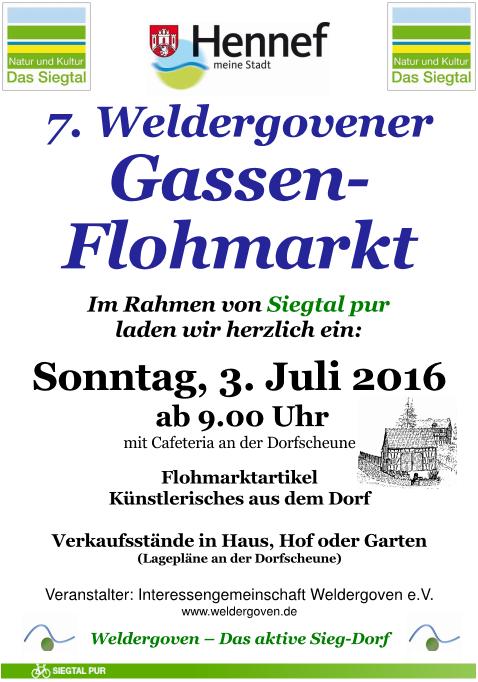 Auch in diesem Jahr veanstalten wir den Weldergovener Gassenflohmarkt als inzwischen feste Größe im Hennefer Rahmenprogramm von “Siegtal pur”, dem jährlich veranstalteten autofreien Siegtal.