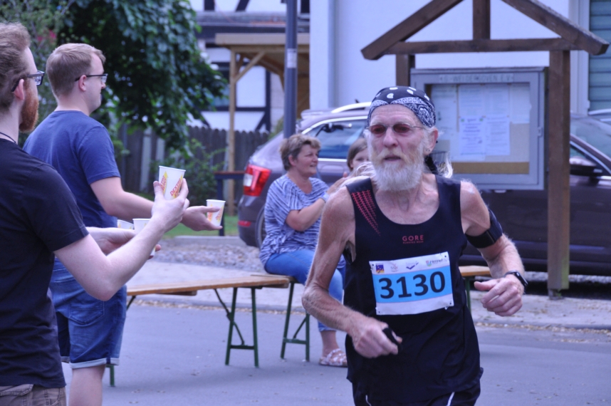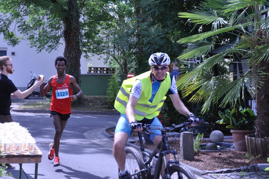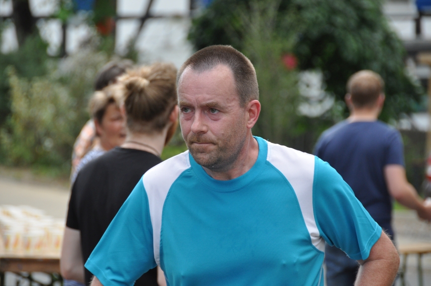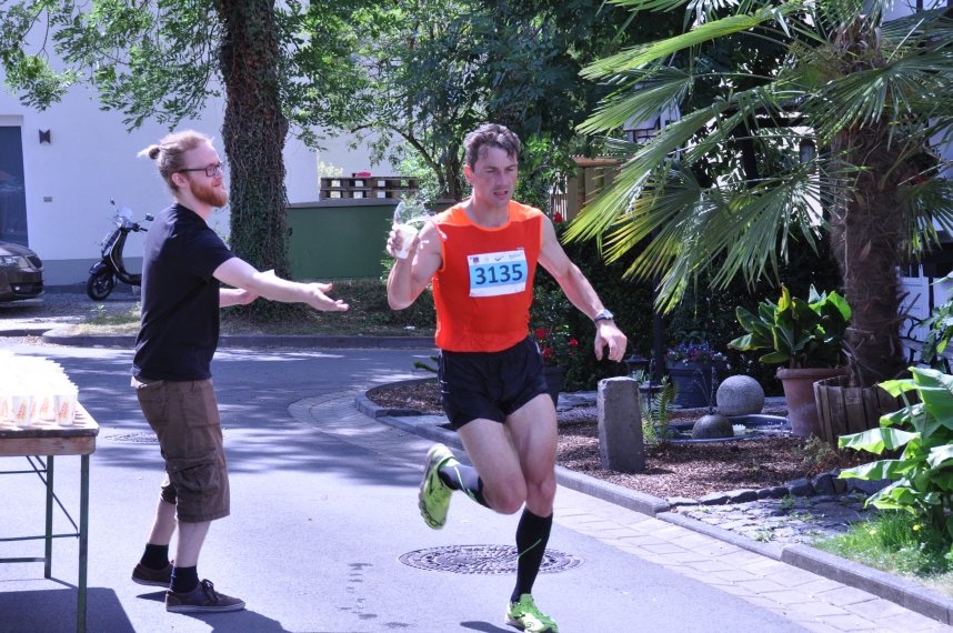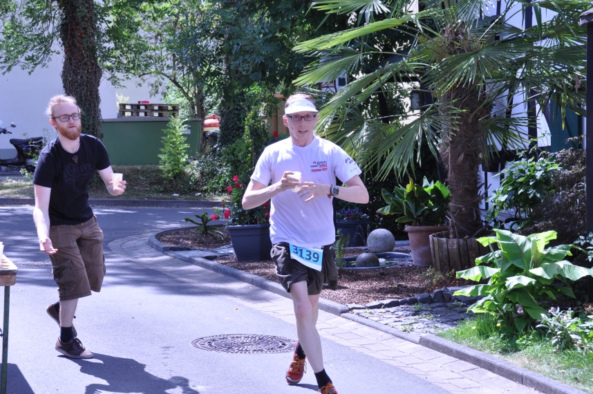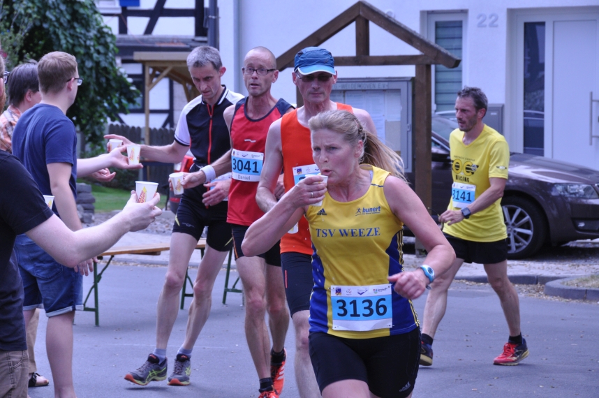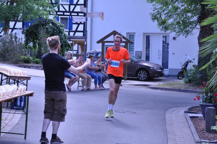 Bei der Getränkestation an der Scheune in Weldergoven wurden die Teilnehmer des Brückenlaufs wieder mit Getränken versorgt. Für die Läufer gab es dieses Jahr nach der Hitzewelle der letzten Woche halbwegs angenehme Temperaturen.