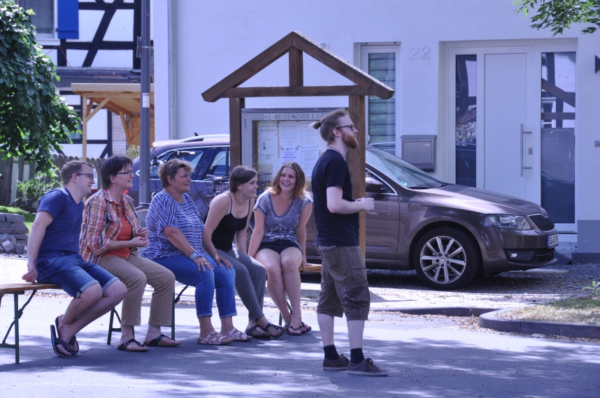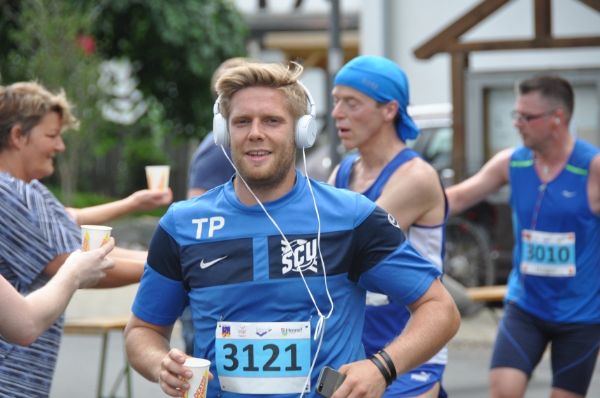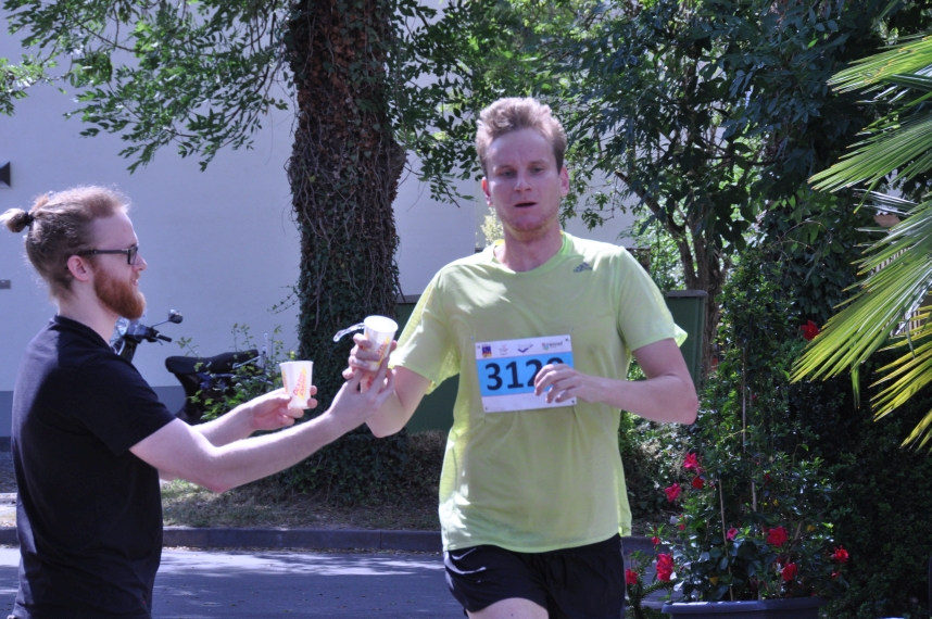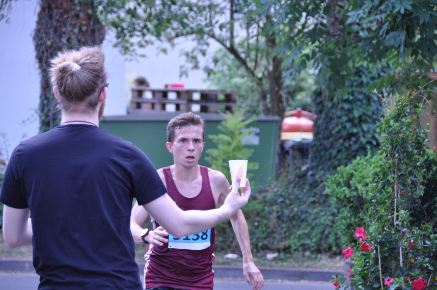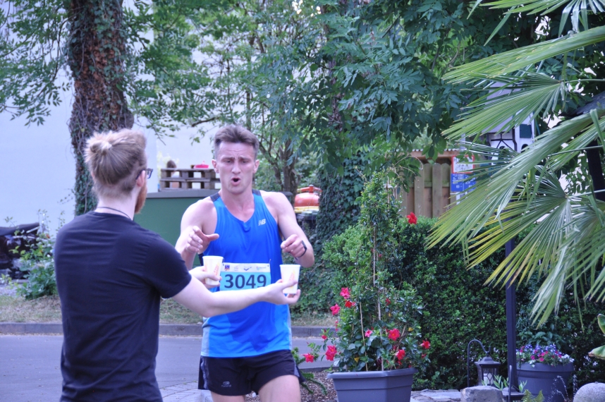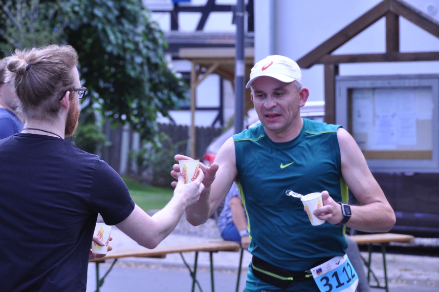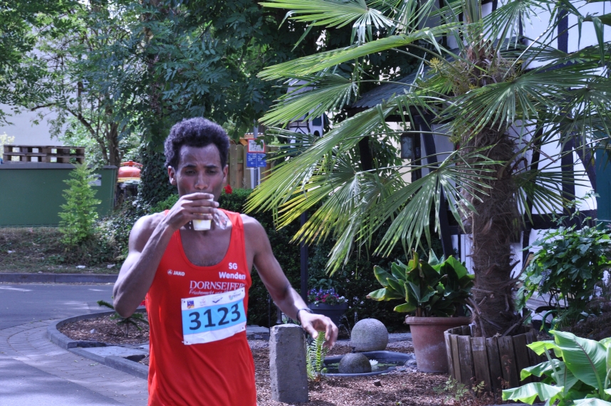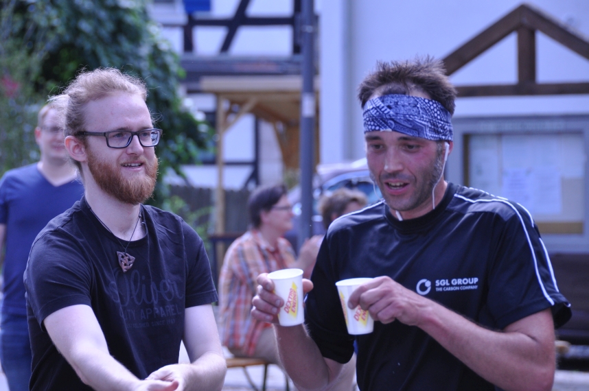 Bei der Getränkestation an der Scheune in Weldergoven wurden die Teilnehmer des Brückenlaufs wieder mit Getränken versorgt. Für die Läufer gab es dieses Jahr nach der Hitzewelle der letzten Woche halbwegs angenehme Temperaturen.